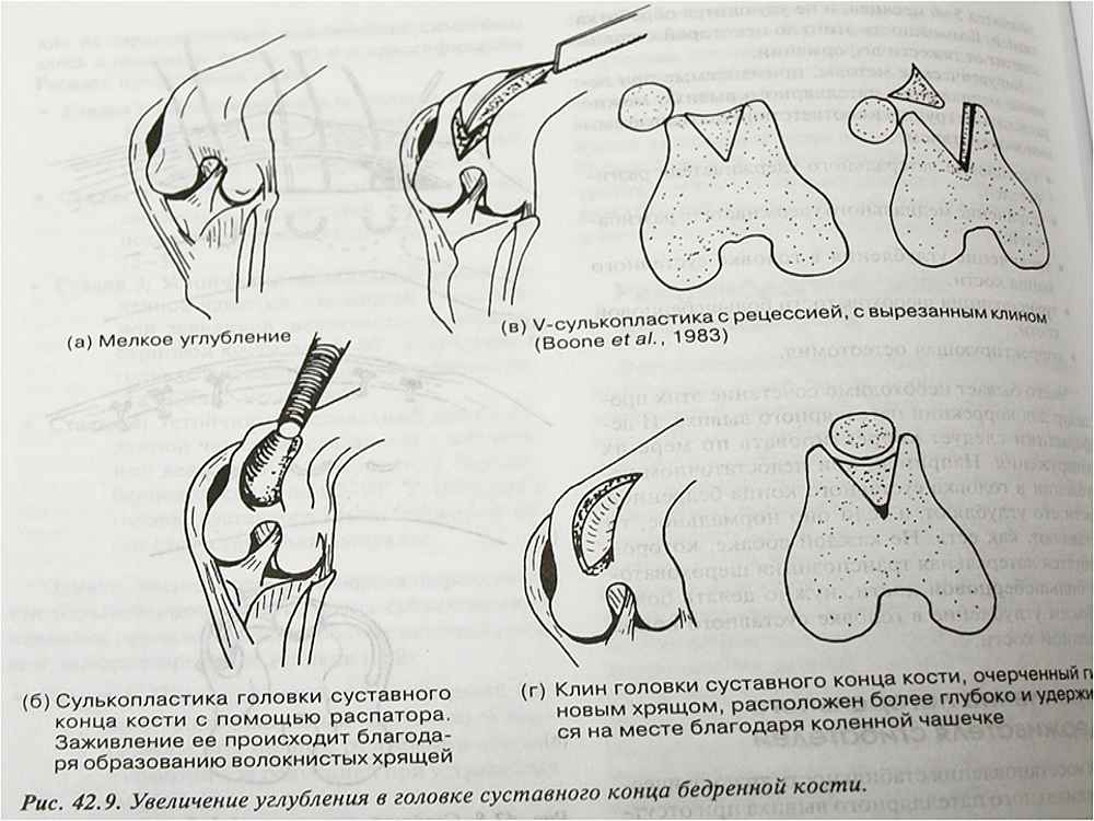 Основними є: формування дублікатури капсули суглоба або пателярної зв’язки, кістково-хрящова пластика блоку стегнової кістки та переміщення горбистості великогомілкової кістки.