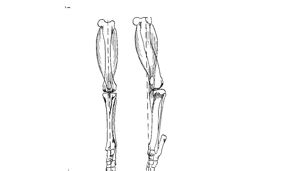 Намалюнку 1 показано як варусна деформація стегнової кістки призводить до внутрішньої ротації великогомілкової кістки (медіалізаціі ГВГК) імедіального зміщення колінної чашки.