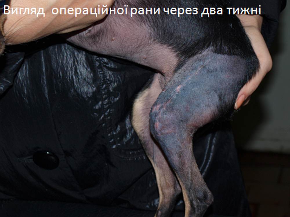 Переважна більшість прооперованих собак після зняття пов’язки уникає наступання на прооперовану кінцівку. Кроки невпевнені, відчувається незначна больова реакція. Деякі тварини взагалі не наступають протягом 5-7 днів.